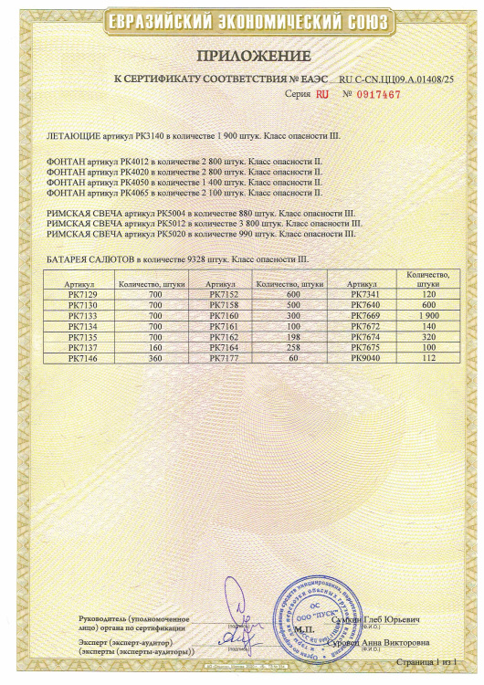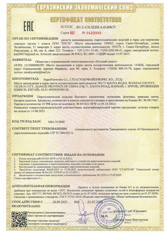 Продолжительность: Длительное и очень динамичное шоу (Ожидаемое время горения: 50-70 секунд).