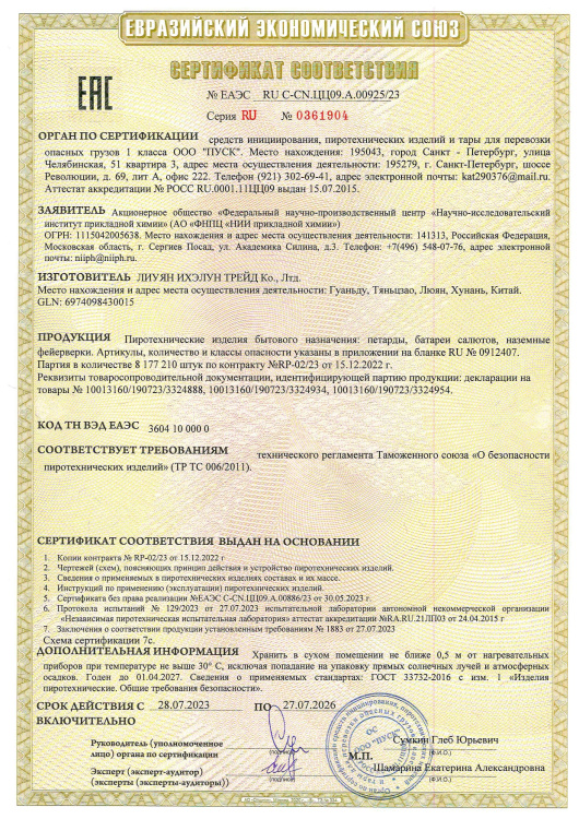 «Новогодние фантазии» (РС8241) — это продолжительный, мощный и торжественный салют, который идеально подходит для встречи Нового года. Название обещает шоу, полное волшебства, ярких красок и праздничных образов. Батарея на 36 залпов с крупным калибром 1,1 дюйма гарантирует длительные, высокие и внушительные разрывы.