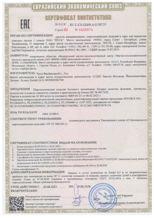 Время работы: До 70 – 80 секунд (интенсивное и насыщенное шоу).