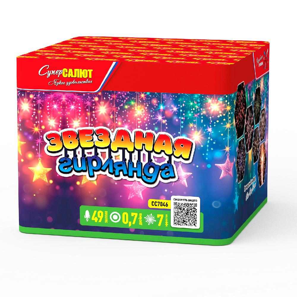 Создайте праздничную атмосферу, которая не гаснет! Салют “Звездная Гирлянда” — это 49 последовательных залпов калибра 0,7 дюйма, которые создадут эффект непрерывно тянущейся светящейся нити в ночном небе!