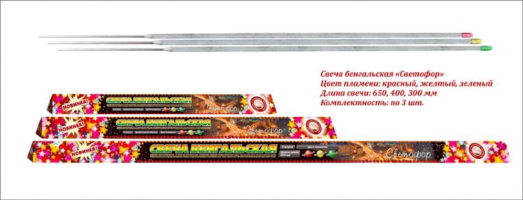 Свеча бенгальская 400 мм (3 шт) "Светофор" красн/желт/зелен. 1/27/3