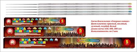 Свеча бенгальская 650 мм (5 шт) "Северное сияние" красн/желт/зелен/голуб/бел. 1/18/5