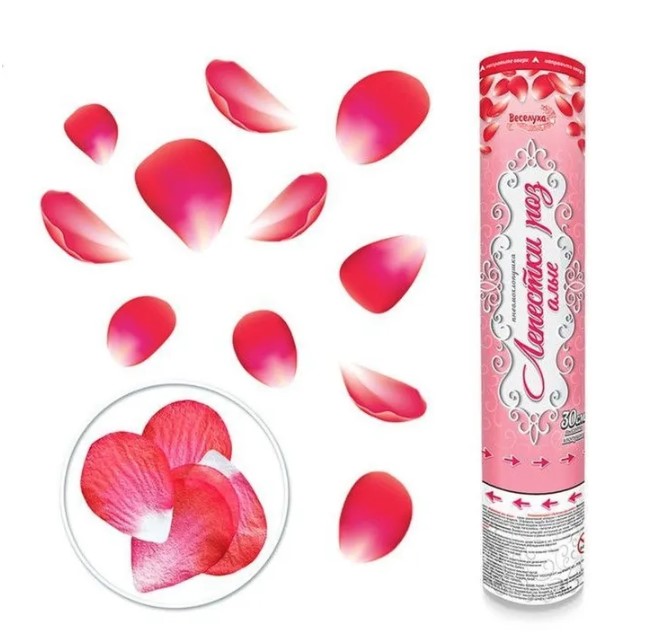 Хлопушка срабатывает за счёт пневматического механизма и выбрасывает в воздух алые лепестки роз, создавая красивый «дождь» из лепестков. Идеально подходит для свадебных церемоний, предложений руки и сердца, фотосессий, романтических вечеров и торжественных мероприятий. Безопасна для применения в помещениях при соблюдении инструкции.