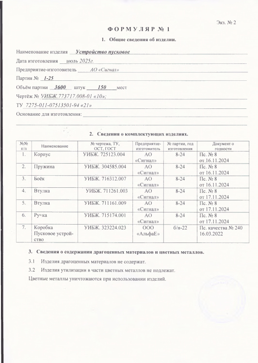 Устройство пусковое к Сигналу охотника №3 1/24/1 (Сигнал)