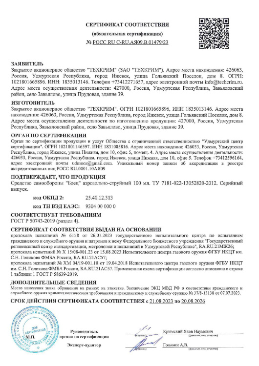 Мгновенный эффект: мощный состав вызывает раздражение дыхательных путей, глаз и кожи, эффективно нейтрализуя угрозу.