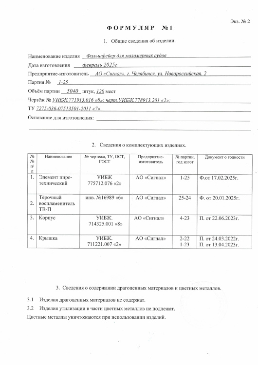Фальшфейер для маломерных судов 1/42/1