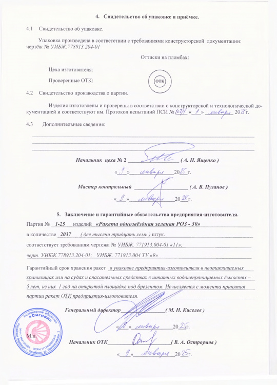 Производитель: ОАО "Сигнал" — российский производитель пиротехнической продукции, известный высоким качеством своих изделий.
