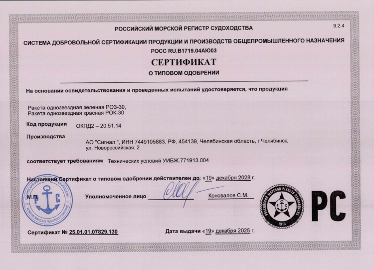 РОЗ-30 Ракета однозвездная зеленого огня (ОАО "Сигнал")