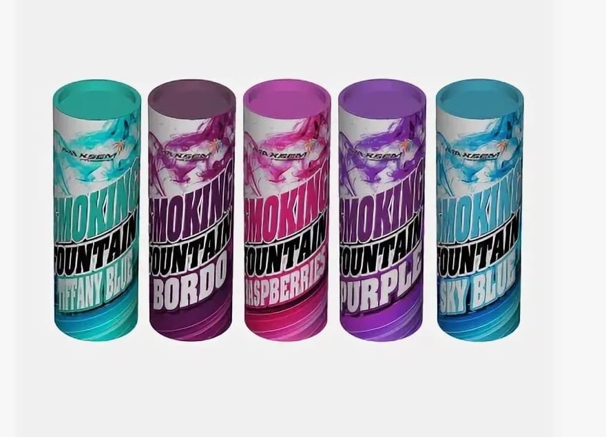 Цветовая гамма: набор включает в себя 5 дымовых фонтанов, каждый из которых выделяет дым определенного цвета: тиффани, бордовый, малиновый, фиолетовый и голубой. Это позволяет создавать яркие и разнообразные визуальные эффекты, которые подойдут для разных сценариев.
