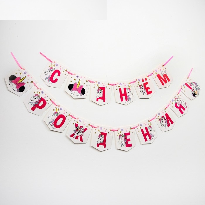 Гирлянда «С Днем Рождения!», Единорог, Минни Маус, дл. 215 см
